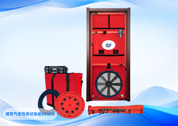 GTI658建筑物气密性测试系统主要用于建筑物整体及其内部室内空间的气密性测试,采用风扇压力法,在房屋密闭的状态下,利用风机在房屋室内外建立压力差,通过调节风机转速使室内压力达到理想的差压( 10-100 Pa ),测量风机输送的空气体积流量,它和通过房屋渗透处的流量相等。用于评估建筑物气密性等级,查找漏点。本仪器符合欧美及国内建筑行业多种现行测试标准,可根据需要选择测试方式,操作简单,结果精确。